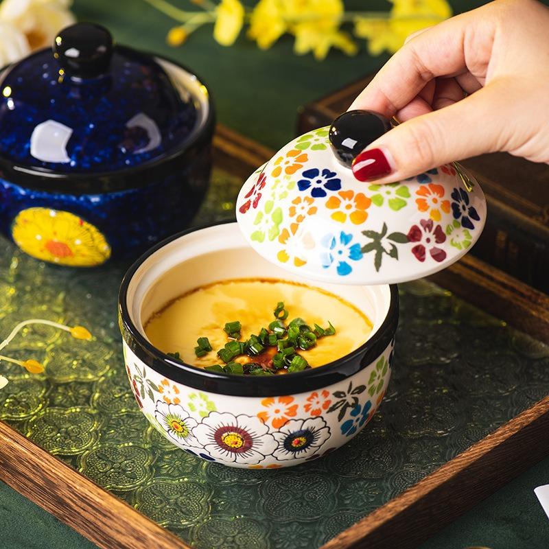 Hand-painted ceramic small stew cup Household soup cup with lid Water-proof soup pot Steamed egg bowl Steamed egg custard bowl Sweet bowl
