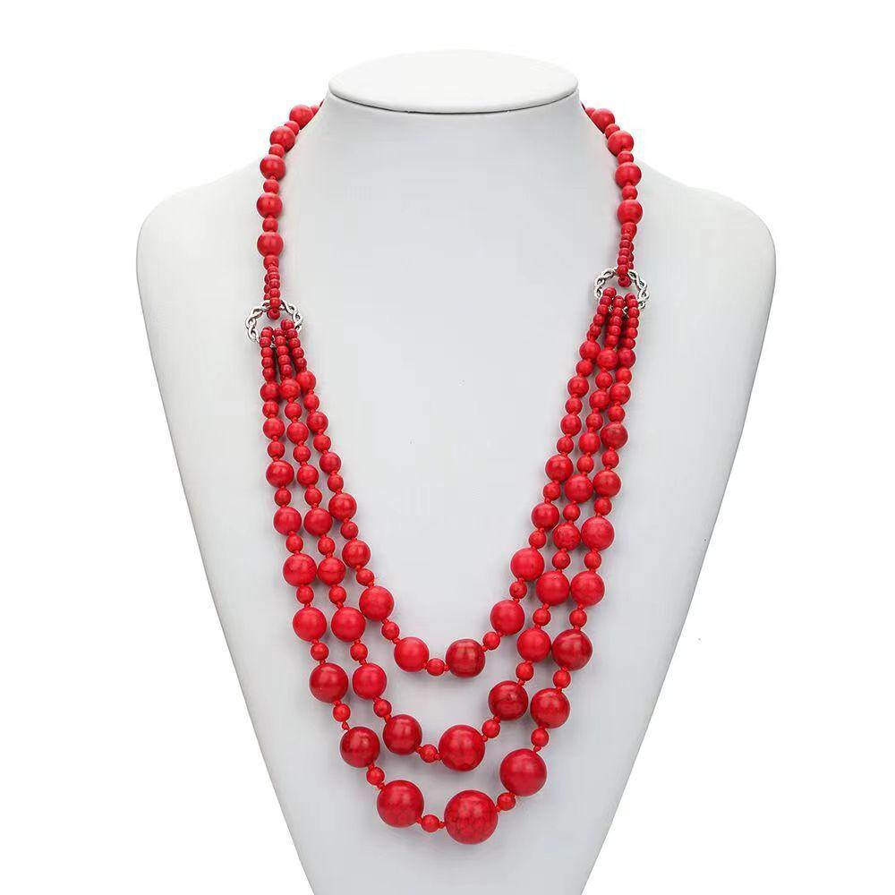 JMXD-Bohemian ethnic style red turquoise three-layer necklace jewelry retro elegant multi-layer long necklace