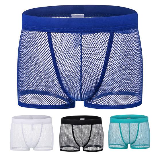 Soutong Men Underwear Hollow Out See Through Sexy Low Waist Breathable Boxer Underpants for Bathroom