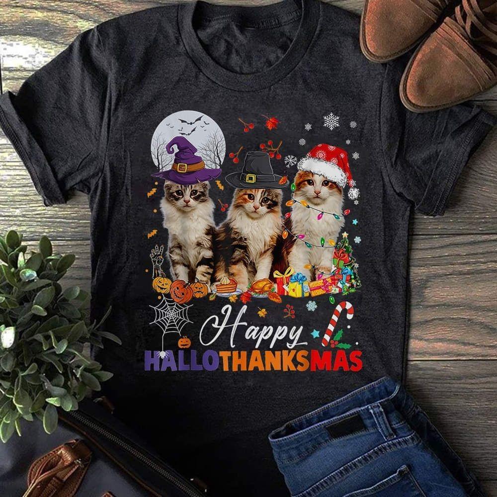 Katzen Team Happy HalloThanksMas, Halloween Weihnachten Thanksgiving Shirt 1F2280 Unisex T-Shirt