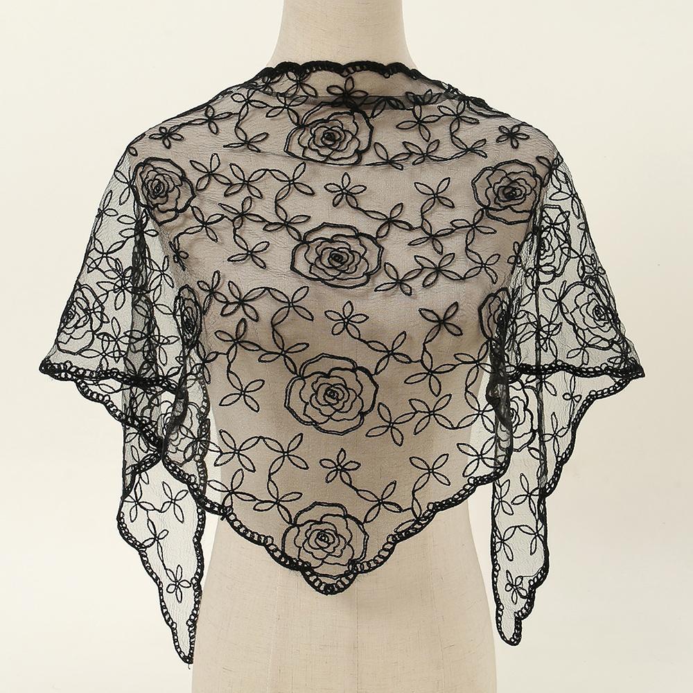 Embroidery Lace Floral Triangular Scarf Veil Woman Muslim Prayer Headscarf Elegant Headcloth Spanish Shawl 130*45Cm