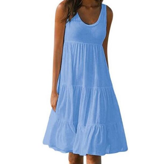Es ist ein großes Saumdesign, das Ihren unvollkommenen Teil leicht verbergen und Ihre schlanke Figur visuell präsentieren kann. Frauen O-Ausschnitt und ärmelloses Kleid können Sie einfacher und lässiger aussehen lassen.