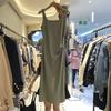 Damen Schwarzes Ärmelloses Midi-Kleid Quadratischer Ausschnitt Bodycon Lässiges Tanktop-Kleid