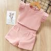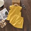 Sommer Mode Heiß Verkauft Mädchen Fledermausärmel Kurze Weste Puppenhemd Shorts Zweiteiliges Set Unifarbene Kleidung