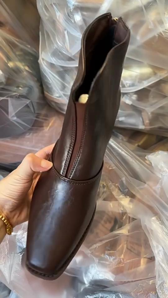 Neue Herbst-Übergrößen-Stiefel mit hohen Absätzen - Damen-Plateau-Stiefel im Retro-Stil mit eckiger Spitze und Reißverschluss