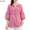 ZANZEA Damen Lässig Stehkragen 3/4-Ärmel Weite Bluse