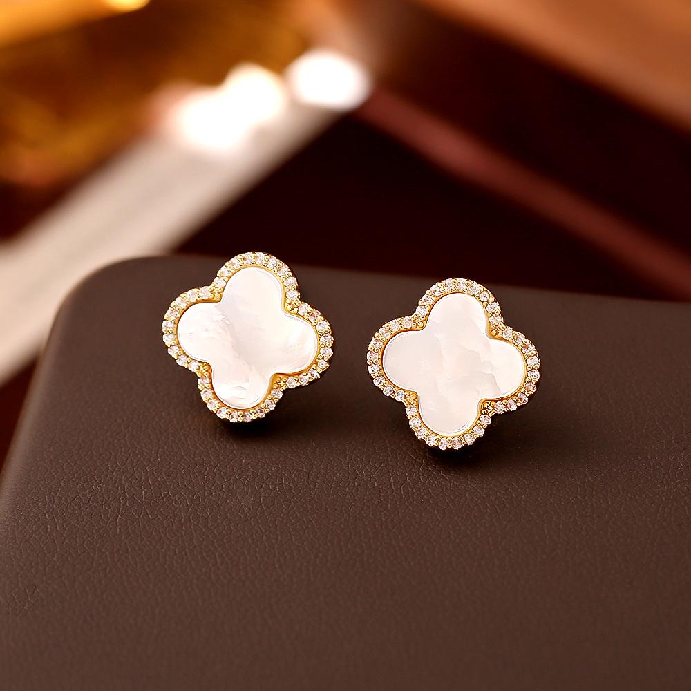 Bestseller-Ohrringe Kleeblatt mit Perlmutt & Zirkonia - Eleganter Luxus Modeschmuck