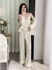 Samt-Pyjama-Set für Damen, Herbst-Winter: Luxuriöse, niedliche Dreiteilige Hauskleidung