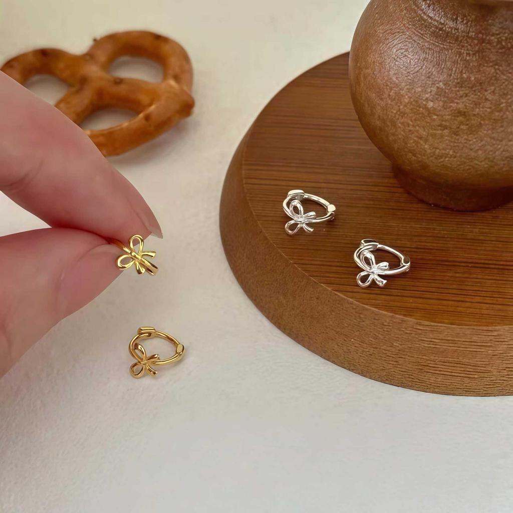 Minimalistische S925 Sterling Silber Schleifenohrringe – High-End Nischen-Design für Ohrpiercing.