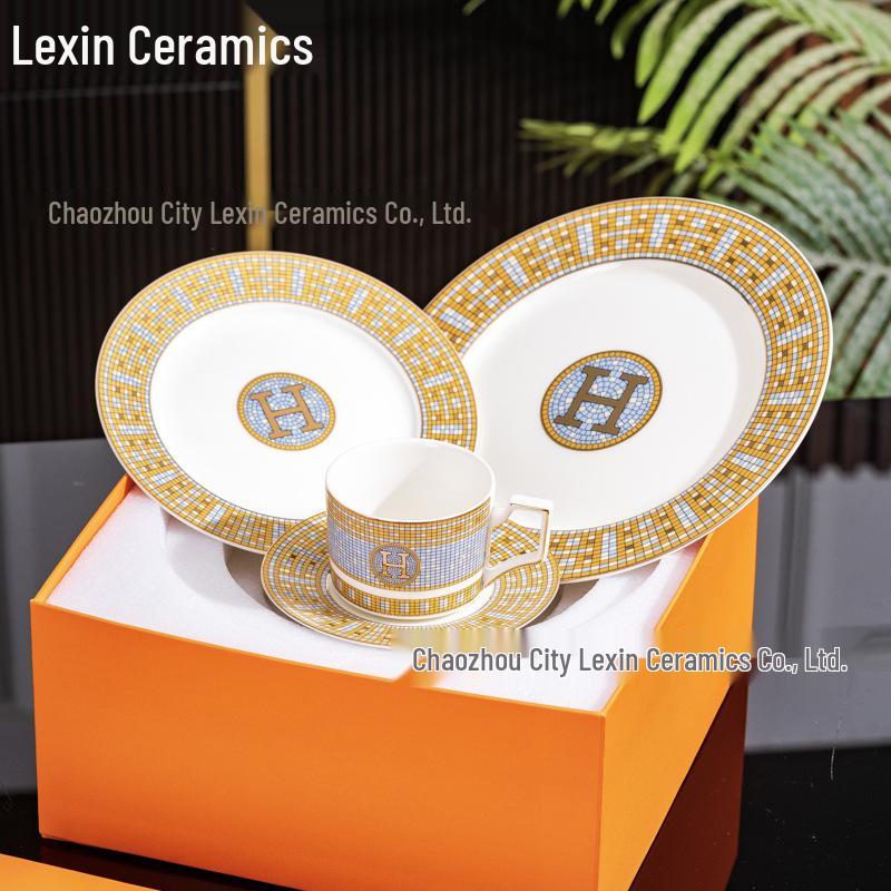 Europäisches Knochenporzellan Geschirrset: Keramiktassen & Untertassen, Kreative Obst-, Speise- & Steakteller