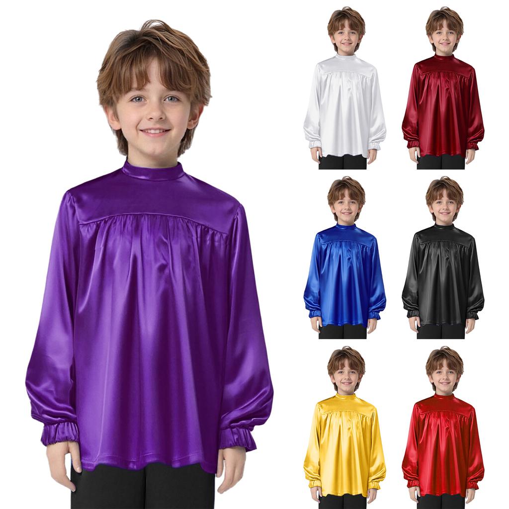 Jungen Stehkragen Langarm Satin Oberteil Lob Liturgische Tanzkleidung Hinten Verdeckter Reißverschluss Design Performance Hemd