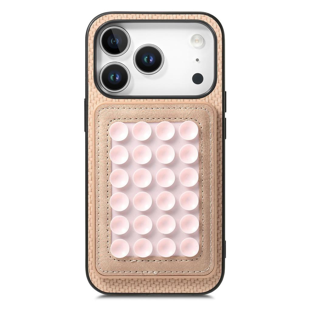For iPhone 17 Pro Max Case Carbon Fiber Texture Leather Back Cover with Magnetic Detachable Suction Cup