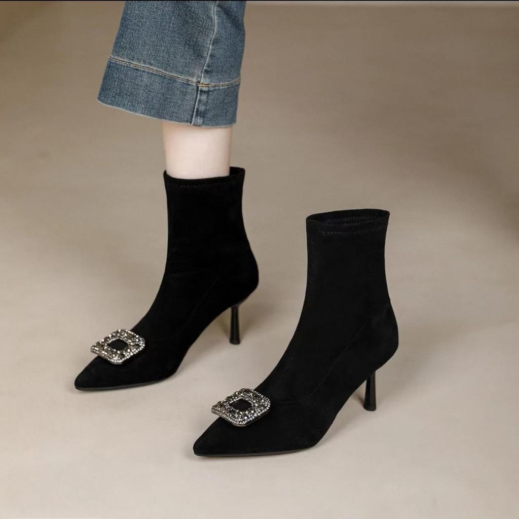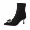 Kurze elastische Stiefel Damenmode Skinny Spitze Saison Feiner Absatz Einzelne Stiefel Sockenstiefel Dating