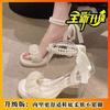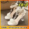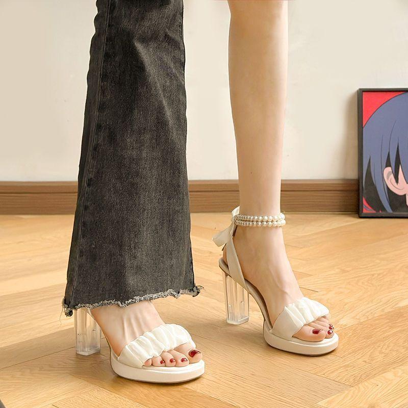 Fee Sommer mit rutschfesten Sandalen draußen Stil einfarbig High Heels Damen Perlen Hunderte Mode Schuhe Rock