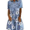 Dieses Kleid verfügt über einen herunterklappbaren Kragen, kurze Ärmel, Taschen und einen Blumendruck, der lässig und modisch ist. Wenn Sie die Knöpfe abschnallen, werden Sie dieses Kleid leicht ausziehen.