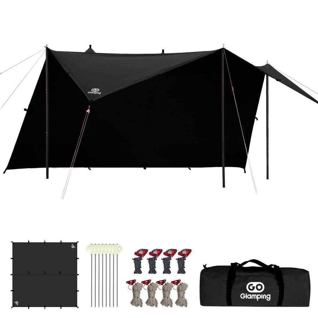 [Inklusive innovativem wasserdichtem Klebeband] Spezielles, wasserdichtes Klebeband, kompatibel mit TC-Material, verhindert das Durchsickern von Regen durch die Nähte. Es hat eine Wasserdichtigkeit von 500 mm, und die Oberfläche des Tarp ist mit einer schimmelresistenten und wasserabweisenden Beschichtung behandelt.. Es kann sowohl an sonnigen als auch an regnerischen Tagen sicher verwendet werden.. *Dieses Produkt besteht aus Polycotton und ist wasserabweisend. Bitte vermeiden Sie jedoch die Verwendung bei starkem Regen oder stürmischem Wetter.