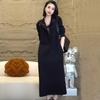 NOTE: Above tile sizes were measured by hand, may with +/- 1cm discrepancy. This single - piece dress features a straight skirt shape with an A - line silhouette and a turn - down collar. It has practical pocket details and a zipper design. Made from cotton - like knitted fabric, it offers both comfort and style, suitable for the office.