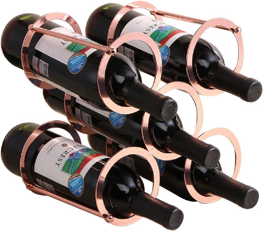 Dieser stilvolle Metall-Weinregal hat ein mittelalterlich-europäisches Flair.. Es zeichnet sich durch eine glatte Textur und ein innovatives, kreatives Design mit überlappenden Kreisen aus.. Es ist aus robustem Eisen gefertigt.