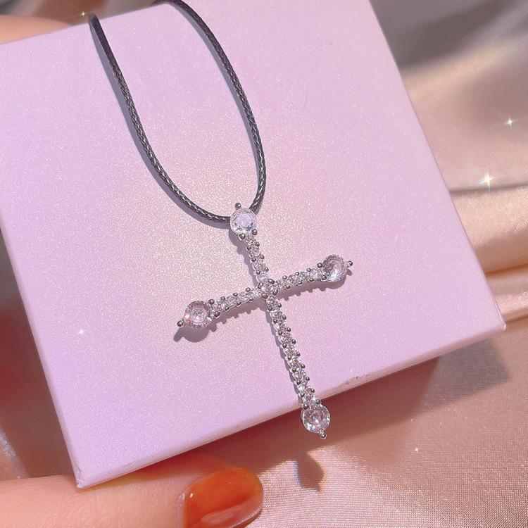 Cross 5A Zircon Necklace Platinum Plated Simple Bright Zircon Cross Medieval Necklace