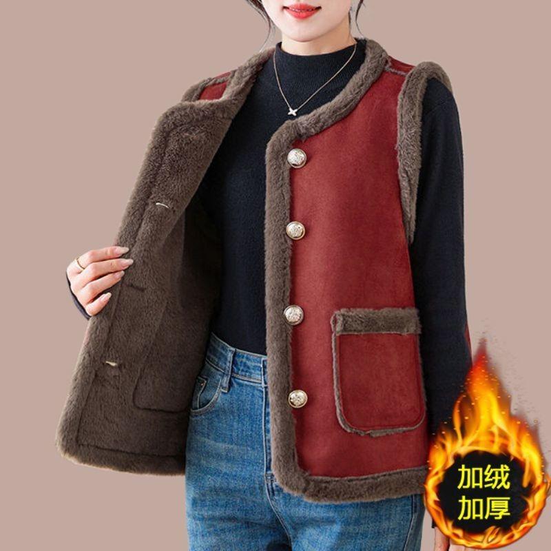 Damen Winter Fleecegefütterte Weste Wendbare Wildleder Ärmellose Jacke Warme Knopfleiste Weste mit Taschen
