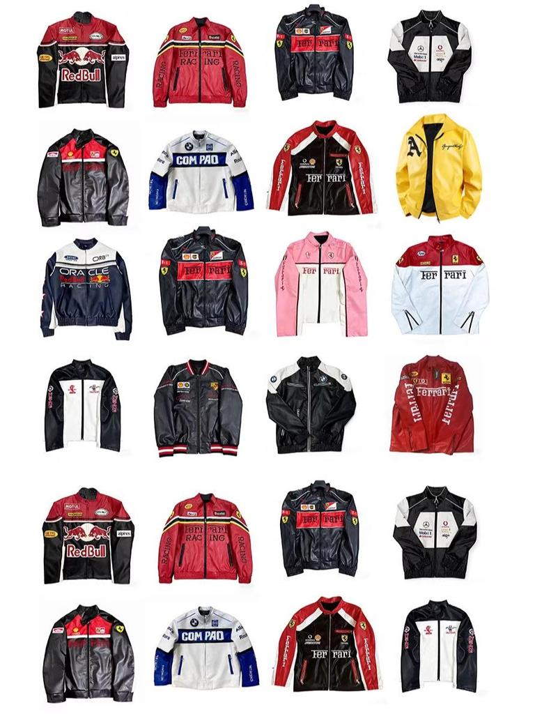 F1 Rennanzug Bestickte Lederjacke - Harley Retro Motorradstil, Baumwoll-Fahranzug, PU-Jacke