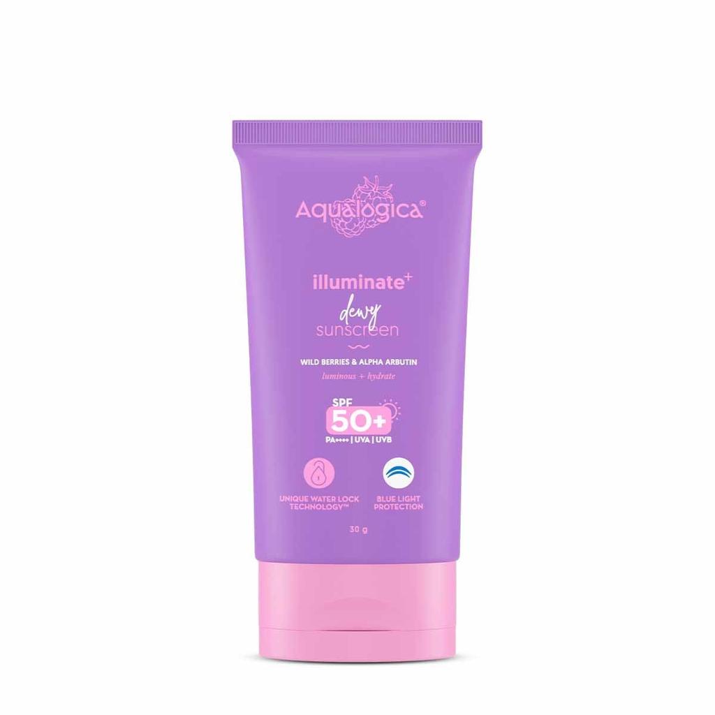 Aqualogica Illuminate+ Dewy Sunscreen Gel SPF 50+ PA++++ 30 g | Broad Spectrum Sun Protection | Lightweight & Luminous Skin