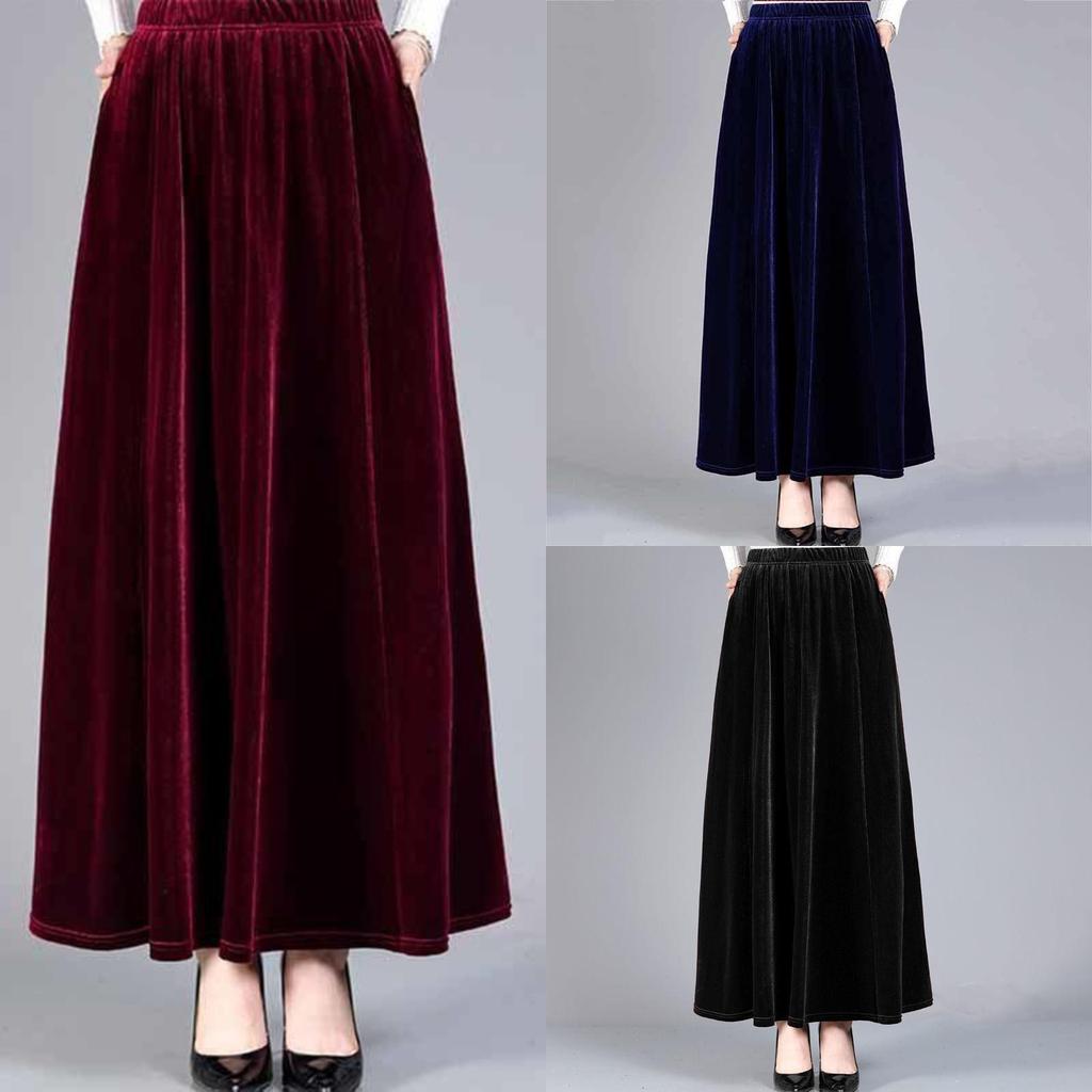 Goldener Samt Elastischer Halbkörper Großer Schwingender Rock A-Linienrock Damen Hohe Taille Vielseitiges Langes Kleid