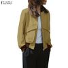 ZANZEA Women Casual Turn Down Collar Solid Color 3/4 Sleeve Cardigan Blouse