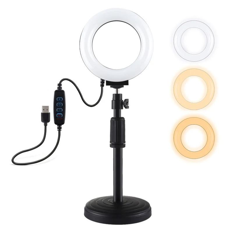 4.7 Inch 12cm Usb Led Ring Vlogging Video Fill Light Round Base Desktop Holder Kits,adjustable Height: 15.5cm-25.5cm