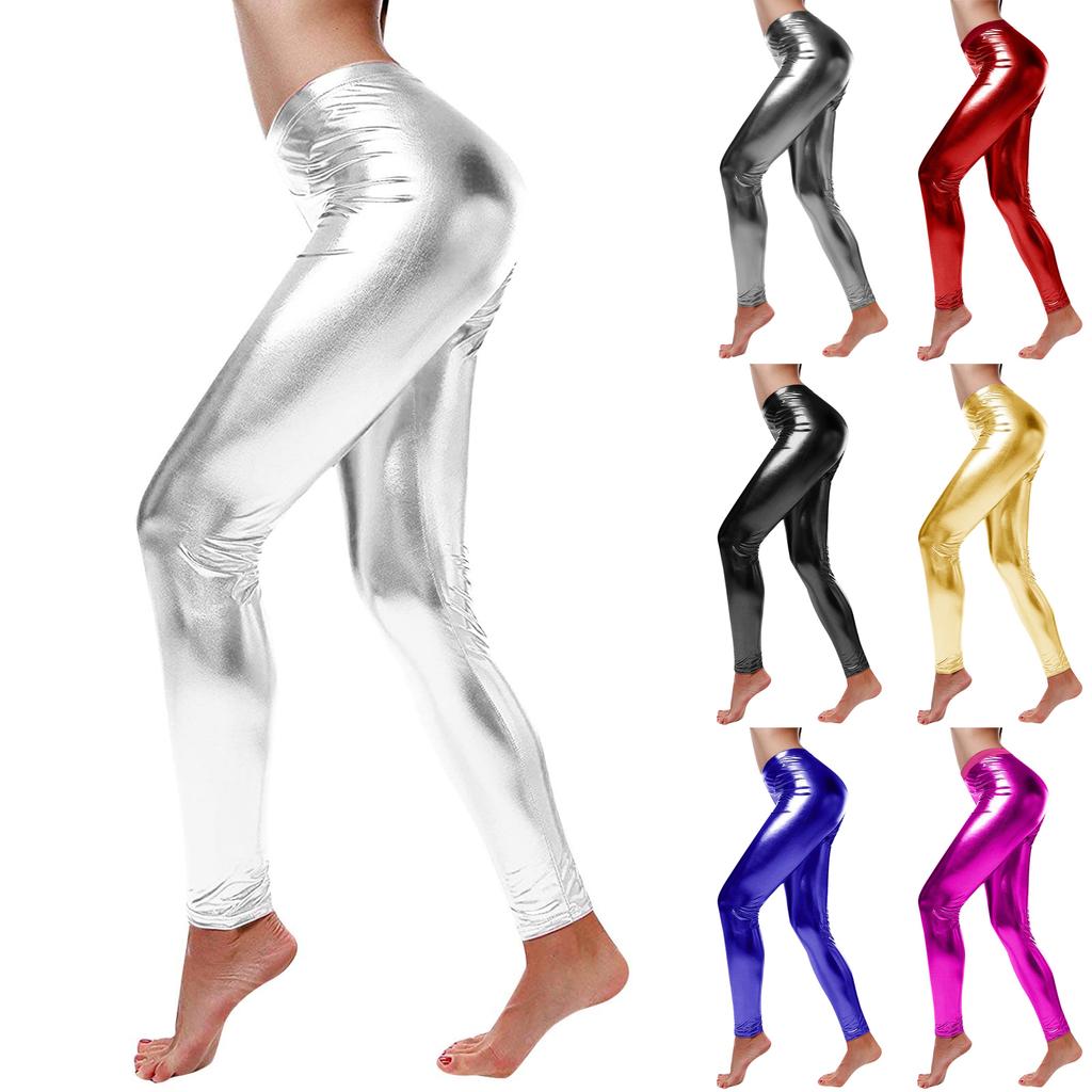Damen Glänzende Kunstleder Leggings Yoga Hose Tanzhose