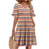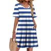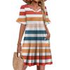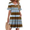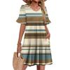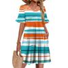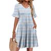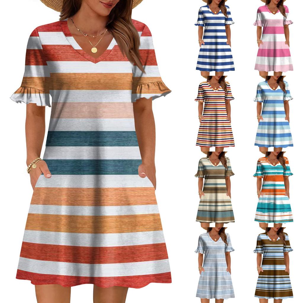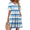 Damen A-Linie Sommerkleid Kurzarm V-Ausschnitt Bedrucktes Kleid Mit Taschen
