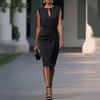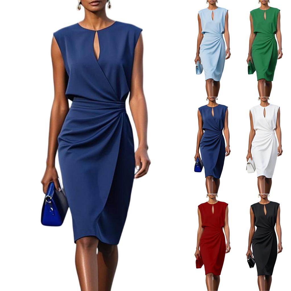 Damenmode Vintage Kreuzknoten Rundhals Schnürung Figurbetontes Kleid