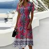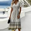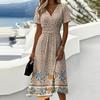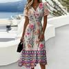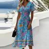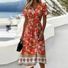 Damen-Kleid mit Blumenmuster, lässig und modisch, kurzärmelig, V-Ausschnitt