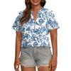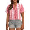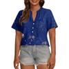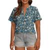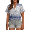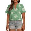Modisches, lässiges Damen-Top mit V-Ausschnitt, Knopfleiste, Oversize-Schnitt, kurzen Ärmeln und Print