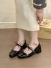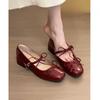 Rote Ballerina Mary Jane Schuhe Damen dicker Absatz Lackleder Oma Schuhe Retro flacher Ausschnitt eckige Spitze Einzelne Schuhe