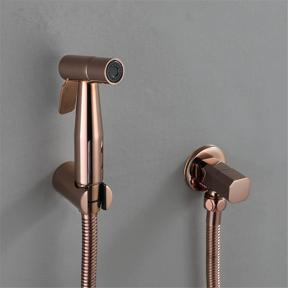 Hand Held Bidet Sprayer Douche Toilet Kit Bidet Faucet Rose Gold Round Shattaf Shower Head Copper Valve Set Jet Bidet Faucet