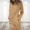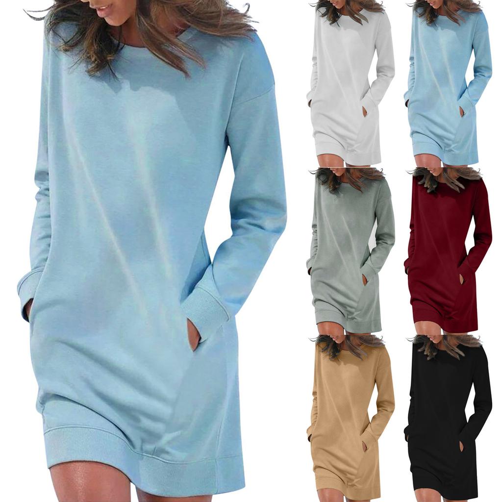 Damen Lässiges Farbe Langarm Rundhals Tasche Kleid