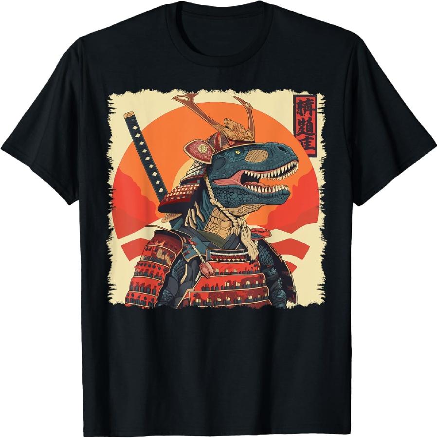 T-Rex Dinosaurier Tyrannosaurus Rex Japanischer Samurai Ukiyo-e T-Shirt