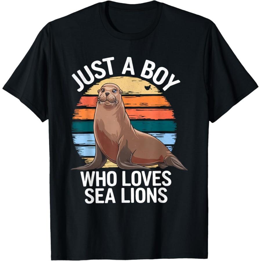 Just A Boy Who Loves Sea Lions Marine Lover Vintage Sea Lion T-Shirt