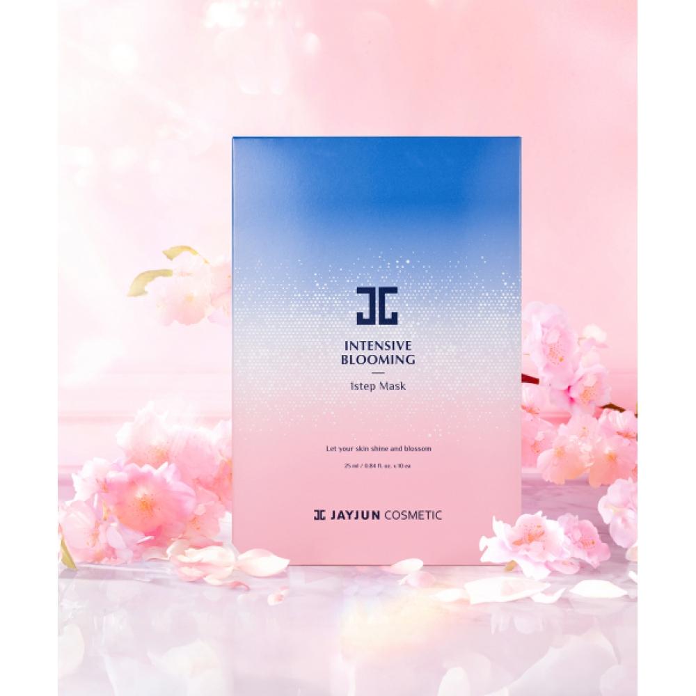 JAYJUN Intensive Blooming Mask 1STEP (20pcs) is a sheet mask infused with essence containing cerulean cherry blossom extract and moisturizing nutrients. This product adheres to the skin, helping it maintain hydration and vitality, offering convenient moisture, nutrition, and soothing care in just one step.