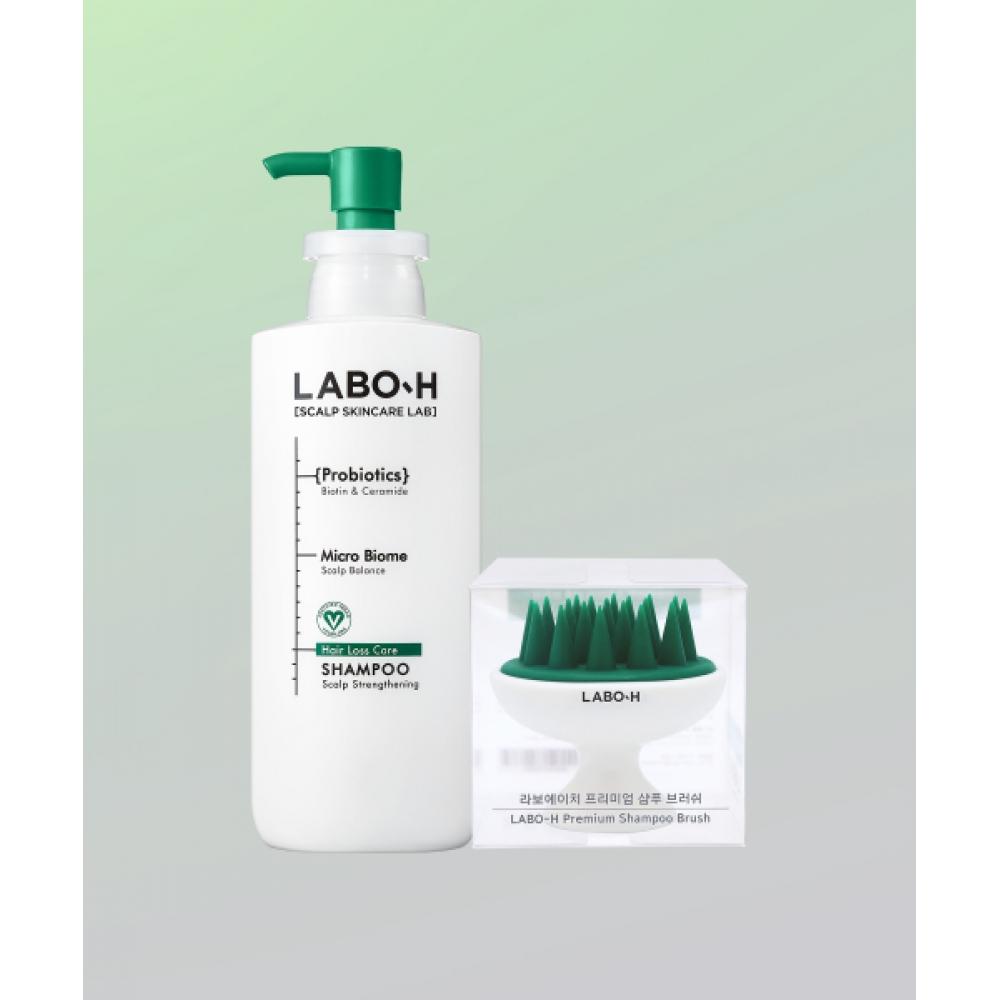 LABO H Haarausfall Linderung Kopfhaut Stärkendes Shampoo 400ml + Shampoo Bürste zielt auf den Zustand der Kopfhaut ab, um Haarausfall-Symptome zu lindern, ohne Sulfat-Tenside, Teerfarbstoffe und Silikonöl für eine sanfte Haarpflege. Es enthält einzigartige Inhaltsstoffe wie Grüntee-Samenextrakt und Hirseöl, wobei eine klinische Studie eine Reduzierung des Haarausfalls um 67 % bestätigt.