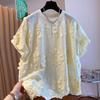 Sommer Französisch Sanft Dreidimensional Blume Gelb T-Shirt Damen Kurzarm Neu Locker Westlicher Stil Kleines Hemd Oberteil