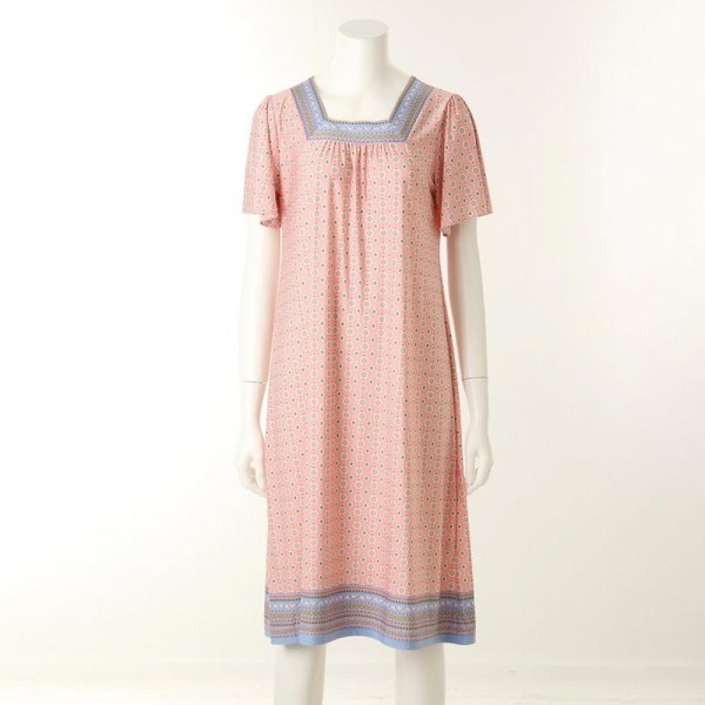 Venus Ethnic Border Dress VEV3927L features a feminine ethnic border pattern with soft colors, ideal for home wear.