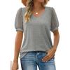 HNXC Damenmode, lässig, einfarbig, kurzärmelig, V-Ausschnitt, Blusen und Hemden