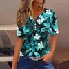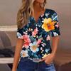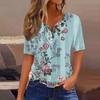 Damen T-Shirt mit Aufdruck und Knopfleiste, kurzärmelig, für den Alltag, Wochenende, modisch, Basic, V-Ausschnitt, normales Oberteil