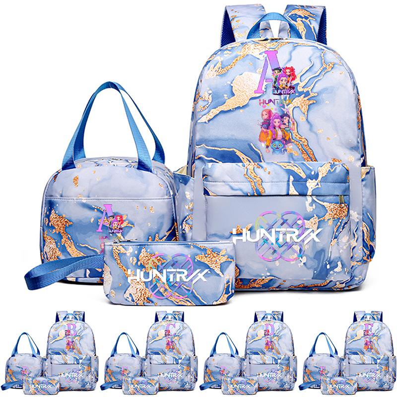 3-teiliges/Set Anime Rucksack mit englischen Buchstaben A-Z Aufdruck, Handtasche und Federmäppchen für Teenager, Schüler, Mädchen, Jungen, Kinder, Schultasche, Reisetasche