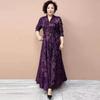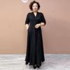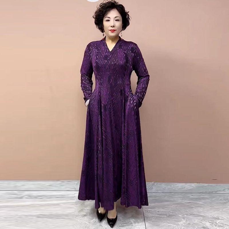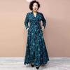 High-end Women's Plus-size Dress Spring and Autumn Slim-fit V-neck Long Printed Dress Stretchy A-line Dress