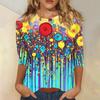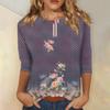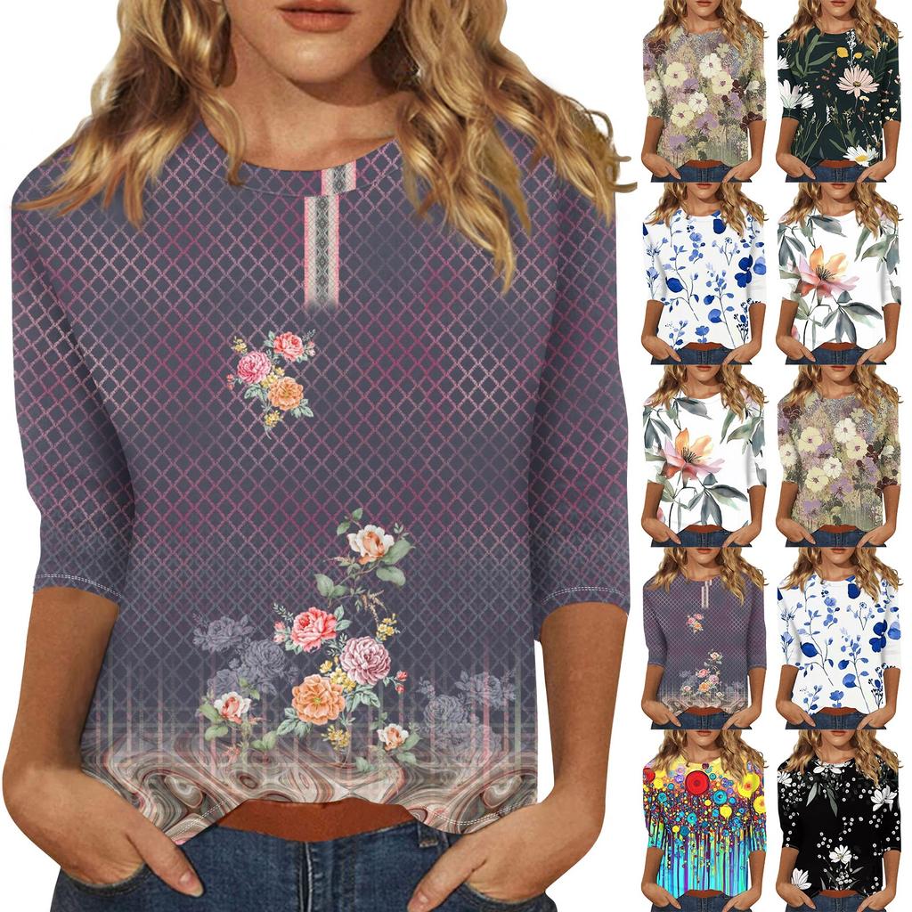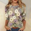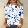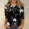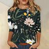 Modisches, lässiges Damenoberteil mit dreiviertel Ärmeln und Blumendruck und Rundhalsausschnitt