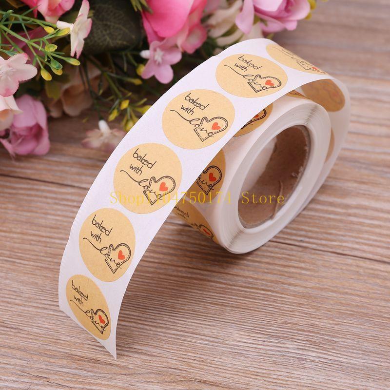 500Pcs Baked With Love Round Kraft Paper Sticker Adhesive Baking Label For Chris top sale