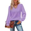 HNXC Damenmode, lässig, einfarbig, langärmelig, V-Ausschnitt, Blusen und Hemden